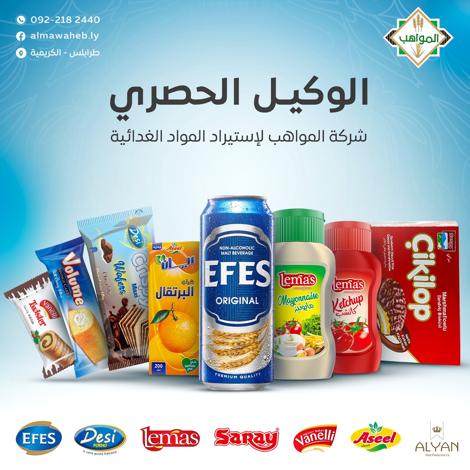 We are Almawaheb International Company for importing foodstuffs. The company was established in 2005, and our story begins when we started working under the name Al-Fath Company, so that our products became in great demand due to their excellent quality, until they became an essential element everywhere in the country of Libya. The tastes of our healthy products have found their way into every home throughout Libya and our brand has gained great popularity among consumers from all segments of society and all social levels.